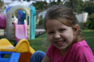 Camille went wearing her flower girl dress from Auntie Su's wedding. I was thinking she could be Odile from Swan Lake, but seeing as she didn't want to be the bad girl she decided to be a fairy instead. (Note the wings on her back.) Please be sure to note her fancy "curly" hair. I put it in braids while it was wet from her shower last night and she was ecstatic that it was "curly like Mom's and Chloe's!" Anyway, here she is being silly. I think she's doing some magic or something because she was mimicking the magician on Sesame Street with her own little twist, "A la peanut butter and honey sandwiches!" She thought this was so funny she was practically in hysterics!